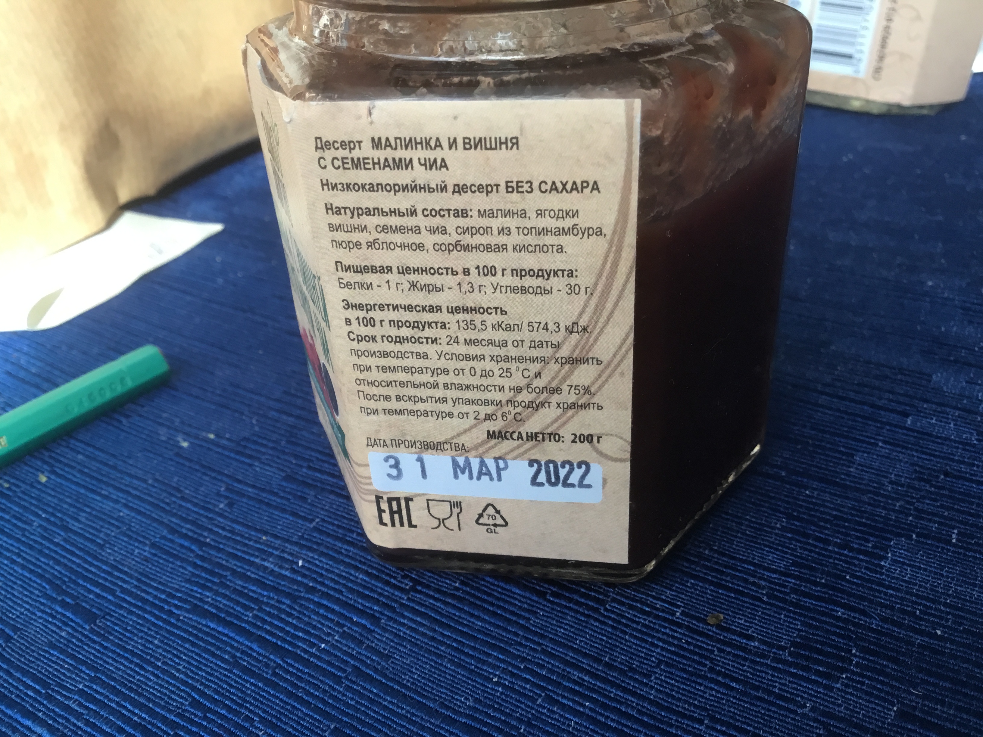 Просмотреть или сохранить оригинал: Первый отзыв. Десерт малинка с вишней и семенами чиа